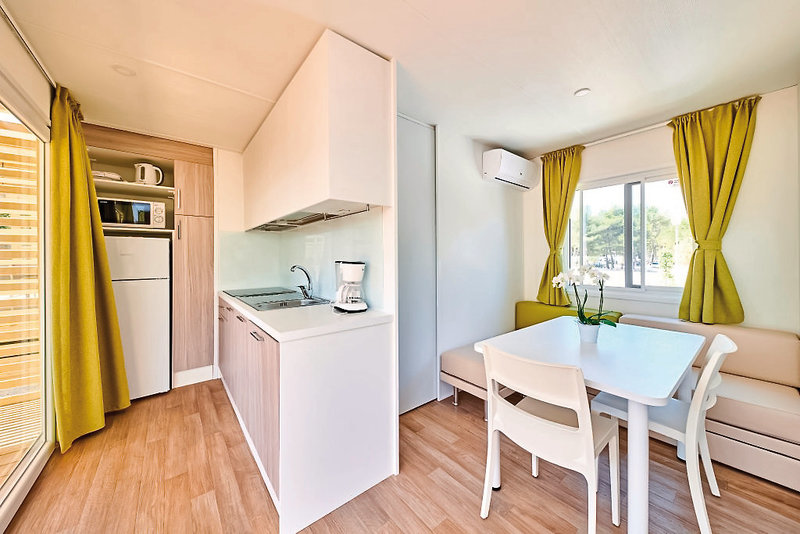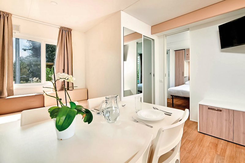 - 31-35 qm, Mobilhome, Superior, 2 separate Schlafzimmer, kombinierter Wohn-/Schlafraum, Sitzecke, 2 Einzelbetten, Doppelbett, Sofabett, 2 Bäder, Dusche, WC, Klimaanlage, Safe, TV, Kochnische, Essecke, Terrasse (möbliert, überdacht), 1 Parkplatz pro Wohneinheit, Bettwäsche kostenfrei, Bettwäschewechsel (1 x wöchentlich), Handtücher kostenfrei, Handtuchwechsel (1 x wöchentlich), Küchenwäsche muss mitgebracht werden, Energiekosten (kostenfrei), Endreinigung (bereits im Gesamtpreis inkludiert)