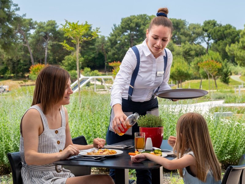 - Hlavná reštaurácia Restoran Marvelus: Kuchyňa: medzinárodná, stredomorská, bufet, show cooking, 7:00 - 10:30, 12:30 - 14:30 a 18:30 - 21:30, klimatizované, s terasou, vysoká stolička