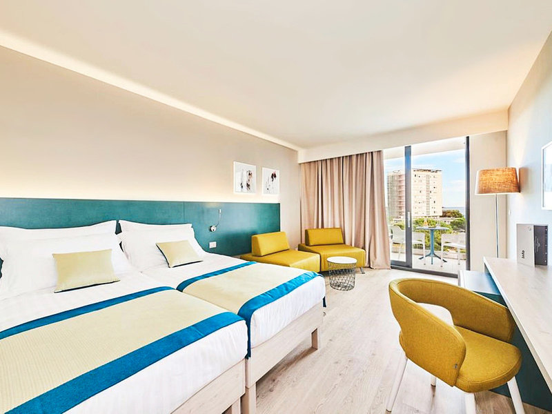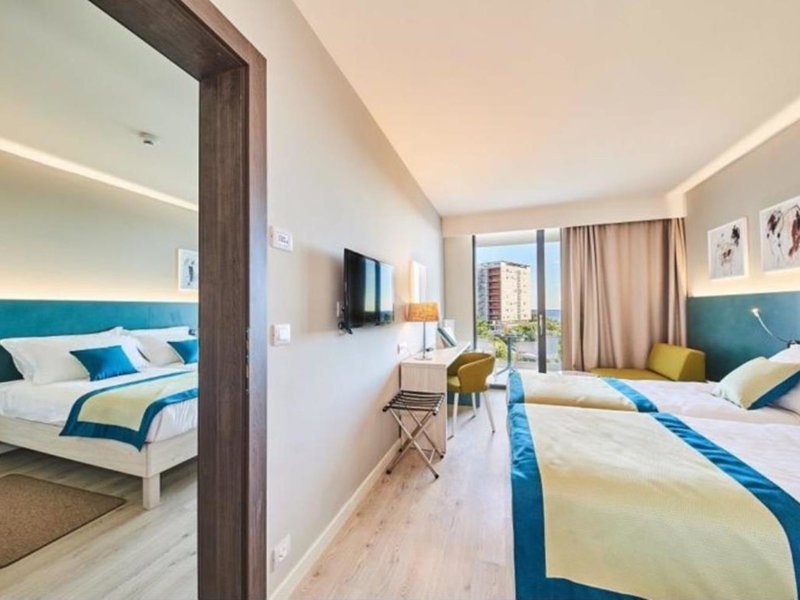 - Premium Family room with balcony, sea side (FZX2), Doppelzimmer, Nichtraucherzimmer, im Hauptgebäude, Meerblick, ca. 27 m², letzte Komplettrenovierung 2017, 2 Einzelbetten, 2 Schlafsofas, Babybett: ohne Gebühr, Reservierung notwendig, Klimaanlage: individuell regelbar, Fußboden: Laminat, Safe: ohne Gebühr, Sofa, Schreibtisch, Minibar: gegen Gebühr, Telefon, Internet: WLAN/WiFi: ohne Gebühr, Fernseher: Flatscreen, im Schlafzimmer, deutsches Programm, Sat-TV, Roomservice: gegen Gebühr, Reinigungsservice: ohne Gebühr, Tageszeitung: gegen Gebühr, Dusche, WC, Föhn, Kosmetikspiegel, Balkon: mit Sitzgelegenheit, Balkon oder Terrasse: mit Sitzgelegenheit