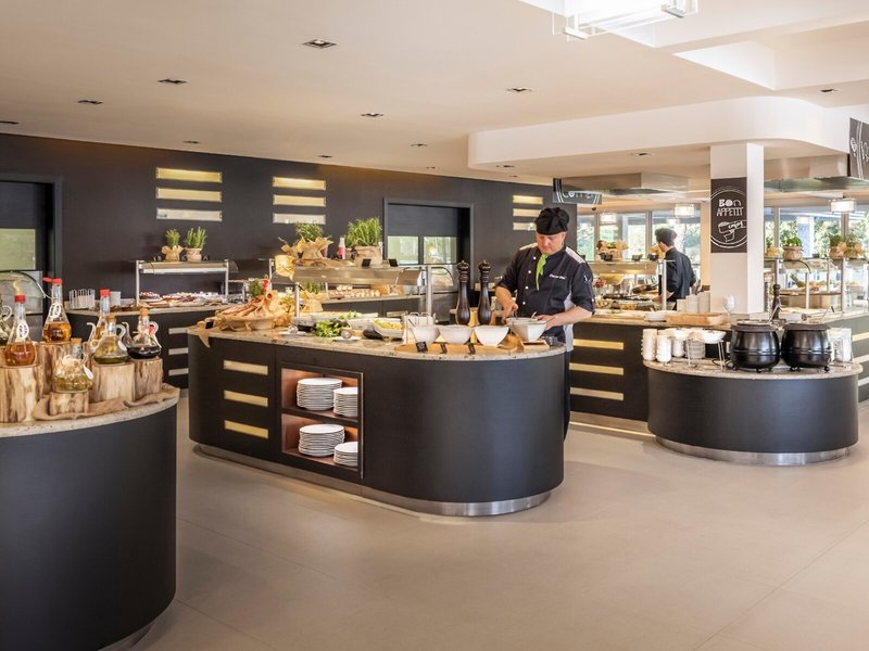 - Hlavná reštaurácia: kuchyňa: medzinárodná, stredomorská, bufet, show cooking, apríl - september; Sezónne, denne 7:00 - 10:00 a 18:30 - 21:00, klimatizované