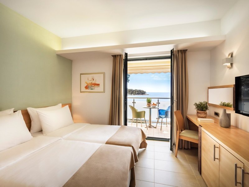 - Superior Room, with extra bed (DZX2), Doppelzimmer, im Nebengebäude, Meerseite, ca. 23 m², letzte Komplettrenovierung 2005, Gesamtanzahl der Räume in diesem Zimmertyp: 1, 2 Einzelbetten (90x200cm), 1 Schlafsofa (80x190cm), Babybett: ohne Gebühr, Anfrage notwendig, Klimaanlage: ohne Gebühr, zentral gesteuert, Fußboden: Fliesenboden, Safe: ohne Gebühr, Schreibtisch, Kühlschrank: ohne Gebühr, Telefon, Internet: WLAN/WiFi: ohne Gebühr, Fernseher: deutsches Programm, Sat-TV, Reinigungsservice: ohne Gebühr, Badewanne, WC, Föhn, Balkon oder Terrasse: mit Sitzgelegenheit