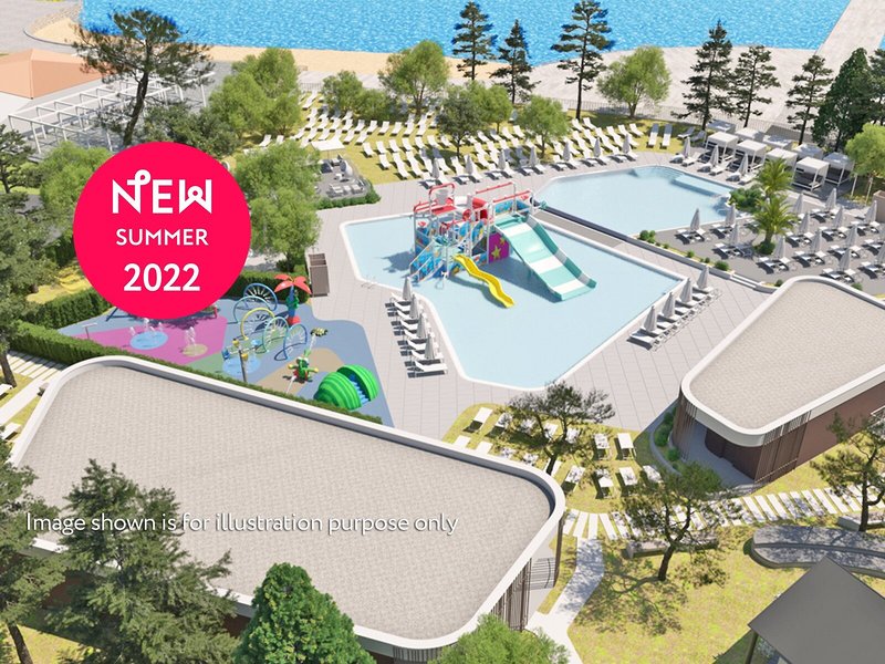 - Bazény: Detský bazén, Aquapark, Vyhrievaný vonkajší bazén, Krytý bazén, Vonkajší bazén, Slnečníky pri bazéne, Lehátka pri bazéne, Tobogán