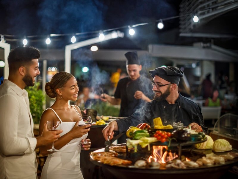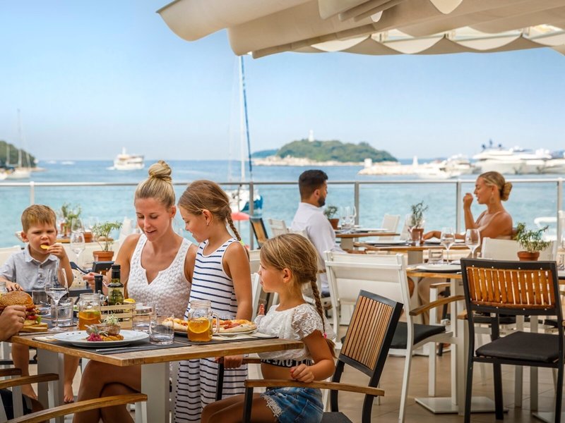 - Hlavná reštaurácia STRAVOVANIE REŠTAURÁCIE: Kuchyňa: medzinárodná, stredomorská, regionálna, bufet, za poplatok, apríl - október, 7:00 - 10:00 a 18:30 - 21:00, klimatizovaná, na pláži , pri bazéne, vysoká stolička
