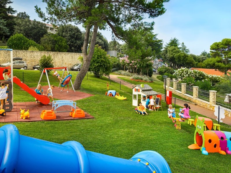 Poloha a okolie Na svahu na polostrove. Skalnatá pláž s plošinami na kúpanie je vzdialená cca 100 m a dostanete sa na ňu len po schodoch. Centrum mesta Vrsar je vzdialené cca 500 m a prístav je vzdialený cca 150 m. Prázdninový komplex sa nachádza v tesnej blízkosti nábrežnej promenády Vrsar (cca 200 m).