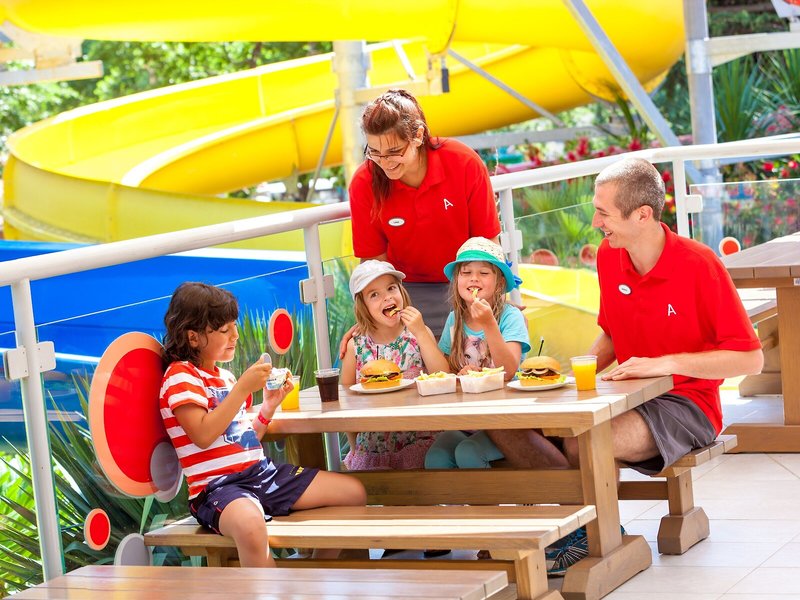 Jedlo a nápoje: Možnosti stravovania zahŕňajú kaviareň a bar. Hostia majú prístup do nefajčiarskej reštaurácie s klimatizáciou, detskými stoličkami a samostatnou fajčiarskou zónou. Komplex ponúka stravovanie s raňajkami a polpenziou. Na raňajky a večeru sa podáva bohatý bufet. Na obed a večeru je k dispozícii široký výber jedál à la carte. Na požiadanie sa pripravujú diétne, bezlepkové a vegetariánske jedlá. K dispozícii sú aj špeciálne jedálne lístky a občerstvenie. Zvláštnou výhodou je show cooking. Rekreačná dedinka ponúka výber alkoholických a nealkoholických nápojov.