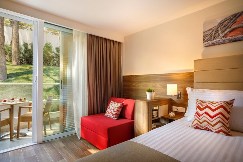 Doppelzimmer Superior Family: Die Zimmer liegen im Girandella Family (ca. 18 m²) und verfügen über ein Schlafzimmer mit Doppelbett, Badezimmer, Klimaanlage, Telefon, LCD Sat.-TV, Minibar (gegen Gebühr), ausziehbarer Schlafsessel, Balkon und Parkblick (DAS). Wahlweise auch mit 3 Personen (DSB, zusätzliches Schlafsofa) oder Meerblick (DSM) buchbar.