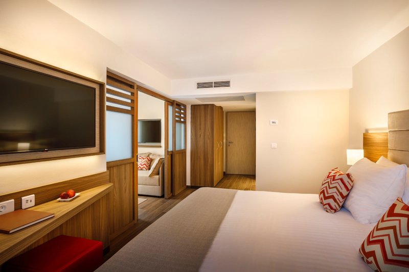 Family Suite Family: Rodinné suity cca 36-39 m² vám ponúkajú dva LCD televízory, klimatizáciu, minibar (za poplatok), kúpeľňu a vizuálne oddelený priestor na spanie s dvomi rozkladacími pohovkami. Rodinné apartmány majú balkón alebo terasu s výhľadom do parku (2FS). Za príplatok je možné rezervovať aj s výhľadom na more (2FM).