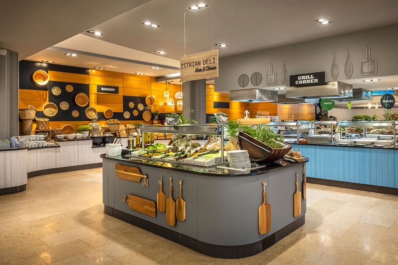 Stravovanie: Polpenzia: Koncept slnečných raňajok a brunchov: od 7:00 do 13:00, raňajky a obedy v reštaurácii s rôznymi tematickými stanicami, ako sú istrijské/ostrovné špeciality, zdravý kútik, jedlá z vajec a mnoho ďalšieho. Možnosť viacerých vstupov. Nealkoholické nápoje sú zahrnuté v cene. Slnečná večera: Večera od 19:00 do 21:00 s rôznymi tematickými večermi, ako sú Deň burgerov, Chuť Talianska, Jednoduchá stredomorská kuchyňa alebo Fish & Chips. Okrem toho je k dispozícii výber polievok, šalátov, pizze, vegetariánskych špecialít a dezertov. (Nápoje nie sú zahrnuté v cene večere.)