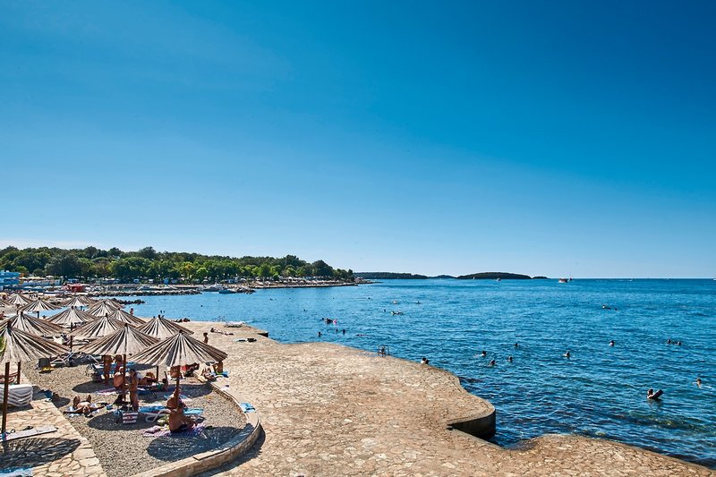 Während der Hochsaison verkehrt regelmäßig eine kleine Schienenbahn zwischen den Hotels auf der Halbinsel und der Stadt Porec (kostenpflichtig)