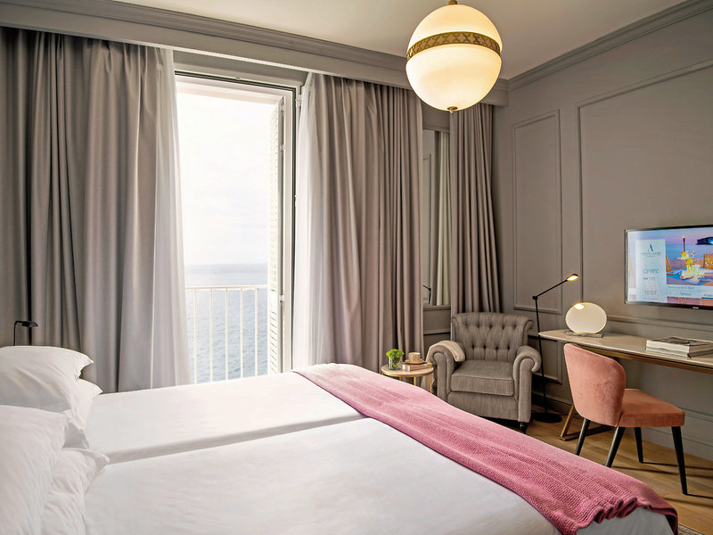 - 26-30 qm, Doppel, Superior, Meerblick, Sitzecke, 1 Bad, Dusche, Bademantel, Badeslipper, Haartrockner, Parkett, Klimaanlage, Heizung, Minibar kostenpflichtig, Safe, TV (Sat-TV, deutschsprachiges Programm, Flachbildschirm), WLAN, Wasserkocher, hochwertige Badartikel, Aufdeck-Service, Anzahl Zimmer: 43