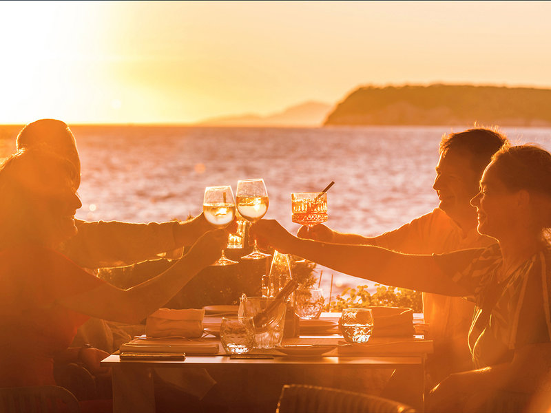 Essen und Trinken: Halbpension: Frühstücksbuffet, abends kaltes/warmes Buffet, abends evtl. Essen im Restaurant des Maestral Hotels
