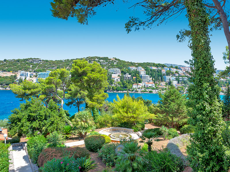 Lage: Auf der Halbinsel Lapad mit mediterranen Garten und Ausblick auf den Elafiti-Archipel. Der Kiesstrand ist ca. 30 m entfernt. Bis zur Altstadt von Dubrovnik ist es ca. 4 km.
