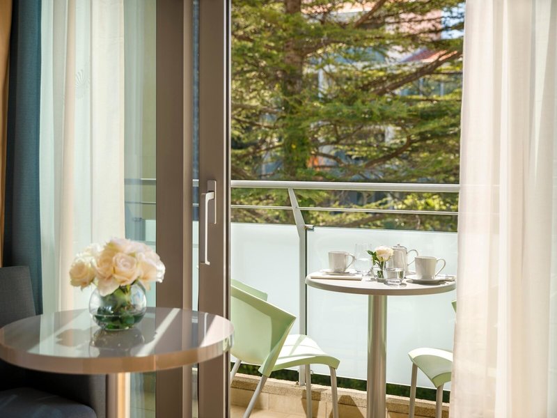 - Superior dbl/twin room - balcony / terrace, seaside (DZX2), Doppelzimmer, Nichtraucherzimmer, im Hauptgebäude, Meerblick, ca. 24 - 27 m², letzte Komplettrenovierung 2018, Gesamtanzahl der Räume in diesem Zimmertyp: 1, 1 Zustellbett, Babybett: pro Tag ca. 5 EUR, Reservierung notwendig, Klimaanlage: zentral gesteuert, Heizung: zentral gesteuert, Fußboden: Laminat, Safe: ohne Gebühr, Schreibtisch, Wasserkocher, Minibar: gegen Gebühr, Softdrinks: gegen Gebühr, Wasser: gegen Gebühr, alkoholische Getränke: gegen Gebühr, Snacks: gegen Gebühr, Minibarauffüllung, Telefon, Internet: WLAN/WiFi: ohne Gebühr, Fernseher: Flatscreen, deutsches Programm, Sat-TV, Roomservice, Reinigungsservice, Badewanne oder Dusche, WC, Föhn, Balkon oder Terrasse: mit Sitzgelegenheit