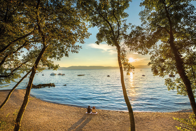 - Kiesstrand: Sonnenschirme (kostenpflichtig), Liegen (kostenpflichtig)