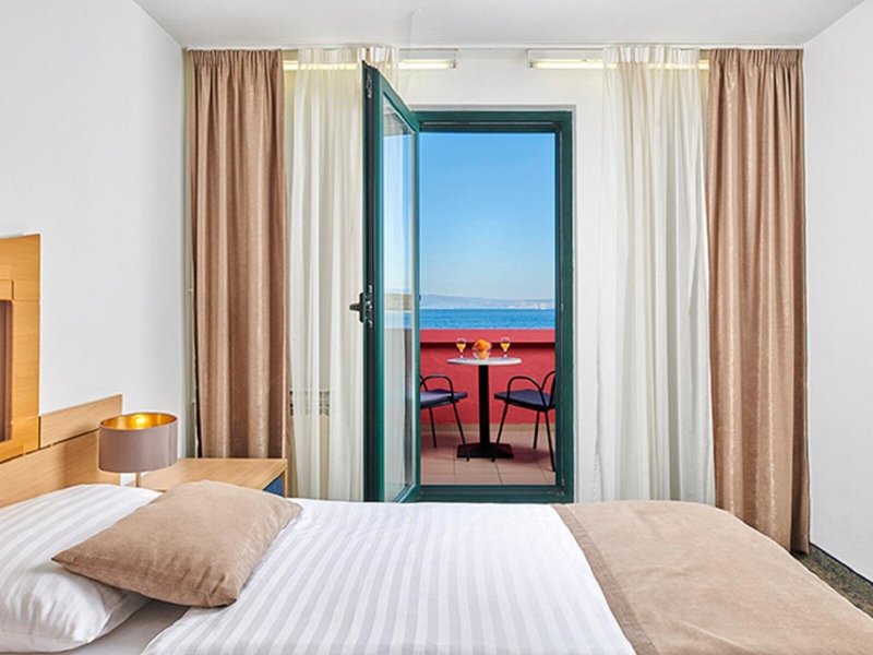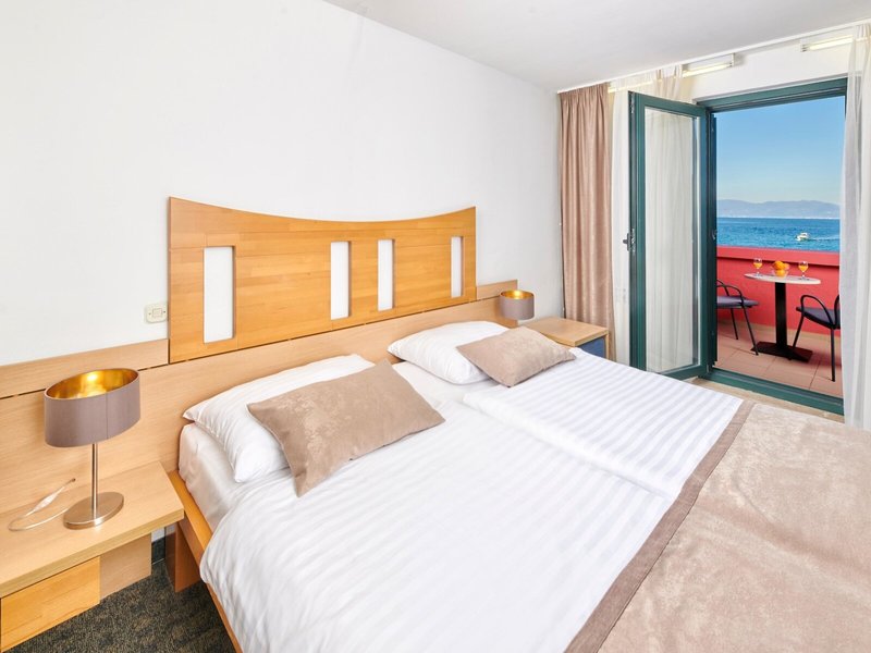 [DB07] Dvojlôžková izba Superior s balkónom a výhľadom na more S2BS: min. 18 m², Kategória izby: Superior, Typ izby: Dvojlôžková izba, Počet izieb: 1 spálňa, 1 kúpeľňa, Počet postelí: 1 manželská posteľ, Detská postieľka k dispozícii ako prístelka: Áno, Všeobecné: Klimatizácia - bezplatne, Kúrenie, Balkón, Minibar - voliteľný, platba na mieste, Kúpeľňa: WC, Fén, Sprcha, Obývacia izba: Pracovný stôl, Sedenie, Médiá a technológie: Telefón, TV, Wi-Fi pripojenie na internet - bezplatne, Výhľad z izby: Výhľad na more