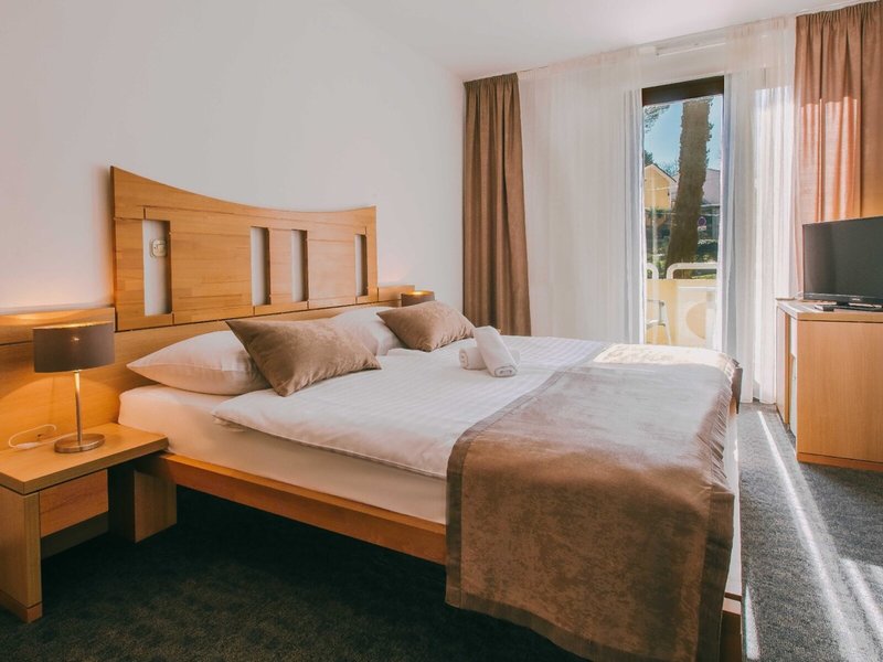 Ubytovanie: [DB04] Štandardná dvojlôžková izba S2: min. 18 m², Kategória izby: Štandardná, Typ izby: Dvojlôžková izba, Počet izieb: 1 spálňa, 1 kúpeľňa, Počet postelí: 1 manželská posteľ, Detská postieľka k dispozícii ako prístelka: Áno, Všeobecné: Klimatizácia - bezplatne, Kúrenie, Minibar - voliteľný za poplatok na mieste, Kúpeľňa: WC, Fén, Sprcha, Obývacia izba: Pracovný stôl, Sedacia časť, Médiá a technológie: Telefón, TV, WLAN/WIFI pripojenie na internet - bezplatne