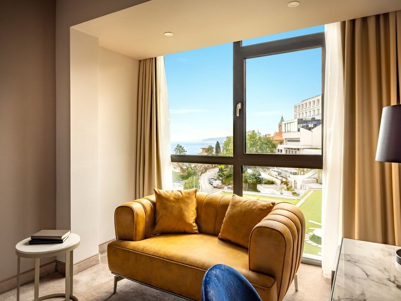 Lage & Umgebung Das Hotel liegt nur einen schönen, etwa 10-minütigen Spaziergang vom Zentrum von Opatija entfernt. Es befindet sich in der Nähe des Meeres und bietet einen wunderbaren Blick auf die Bucht von Kvarner. Zum Touristenzentrum mit Nachtclubs, Pubs, Bars und Geschäften sind es nur etwa 500 m und ca. 50 m vom Hotel entfernt befindet sich eine Bushaltestelle. Zu den Sehenswürdigkeiten in der Nähe gehören der Nationalpark Risnjak und die Postojna-Höhle (jeweils rund 70 km) und der Nationalpark Plitvice (ungefähr 182 km). Die nächsten Flughäfen sind Rijeka (ca. 45 km) und Pula (rund 75 km).