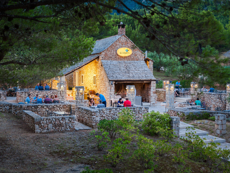 - Špeciálna reštaurácia Konoba / Komin: Kuchyňa: Stredomorská, regionálna, výber z menu, nutná rezervácia, v závislosti od sezóny; Ak to počasie dovolí, nedeľa - piatok, dve jedlá večer, vysoká stolička