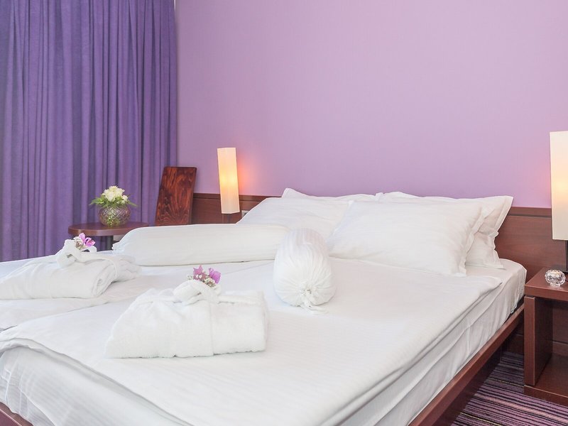 Wellness a fitness: Wellness areál 150 m², plavecký areál: deti od 0 rokov. Len v sprievode dospelej osoby - zdarma, vonkajší bazén 150 m², vnútorný bazén 100 m², saunová časť: deti nad 16 rokov - zdarma, sauna, fínska sauna, vírivka - zdarma, relaxačná miestnosť, masáže - fakultatívne za poplatok na mieste, kozmetické centrum - možnosť za poplatok na mieste, záhrada, ležadlá - zdarma, slnečníky - pláž za poplatok, slnečníky - za poplatok voliteľné za poplatok na mieste