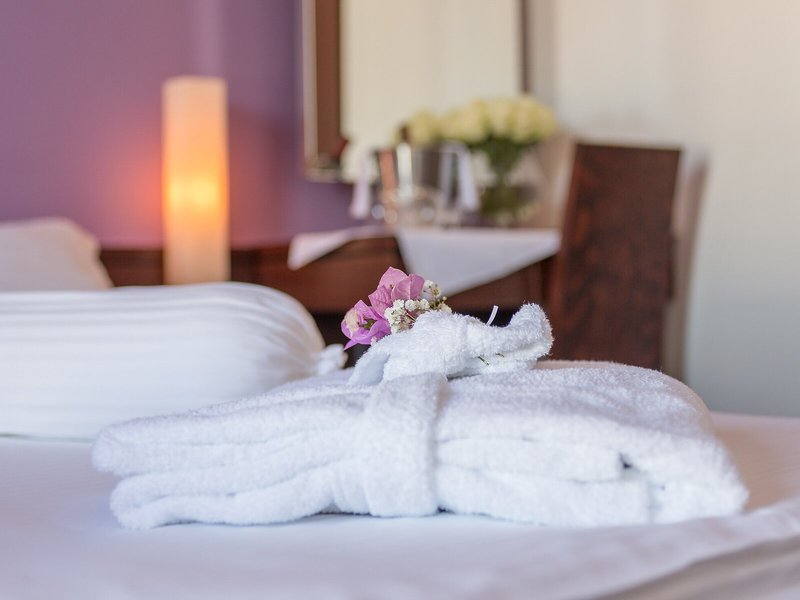 [RO01] Comfort Zimmer: mind. 18 m², Zimmer ist im Nebenhaus, Zimmerkategorie: Comfort, Zimmertyp: Doppelzimmer, Anzahl der Räume: Schlafraum 1x, Badezimmer 1x, Anzahl der Betten: Twin Bett 2x, Gitterbett als Überbelegung möglich: Ja, Allgemein: Klimaanlage - gebührenfrei, Safe - gebührenfrei, Heizung, Minibar - optional gegen Gebühr vor Ort, Toilettenpapier - gebührenfrei, Bettwäsche - gebührenfrei, Handtücher - gebührenfrei, Badezimmer: WC, Haarfön, Dusche, Wohnbereich: Schreibtisch, Sitzecke, Medien & Technik: Telefon, TV, WLAN/WIFI Internetanschluss - gebührenfrei, Zimmerausblick: Meerseite