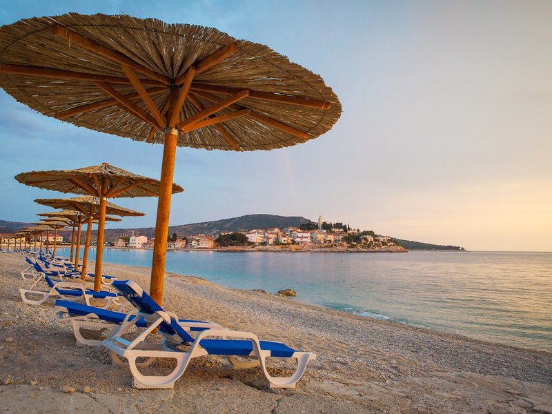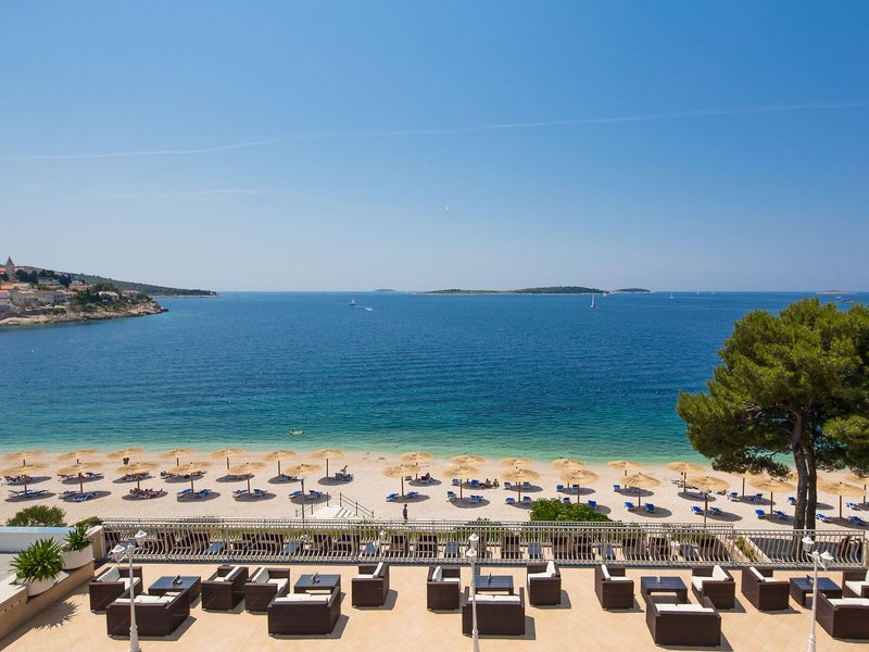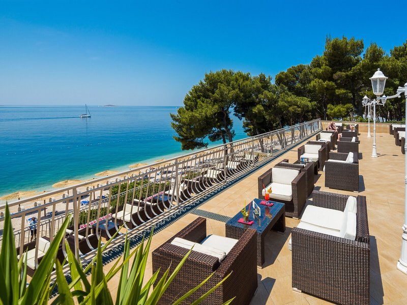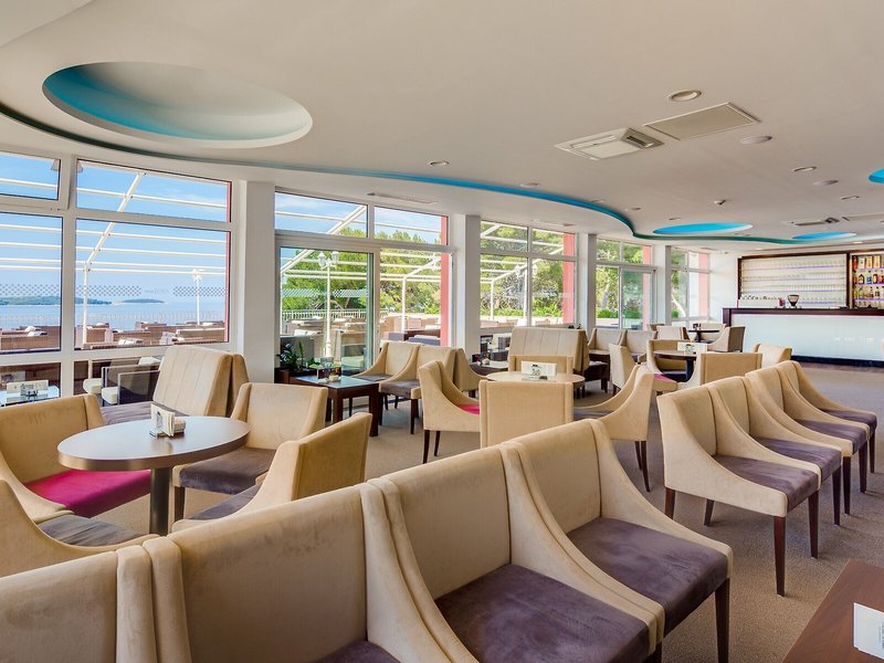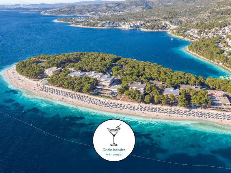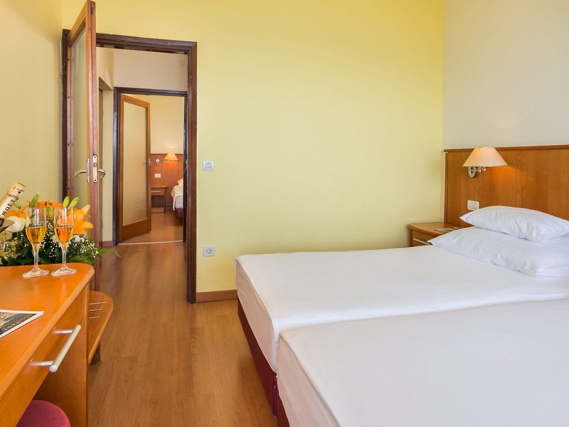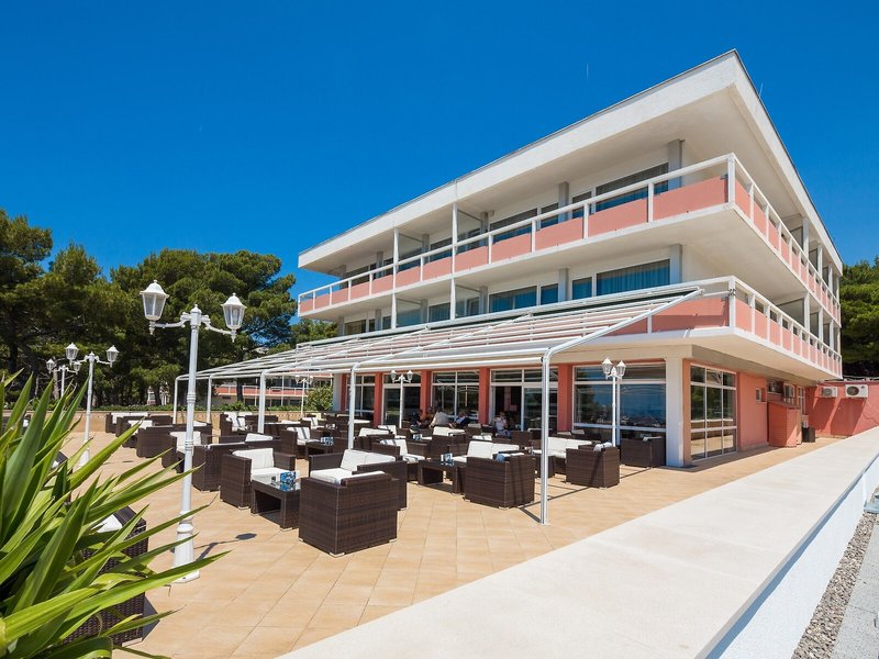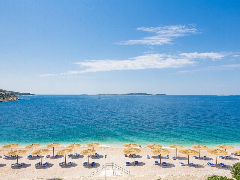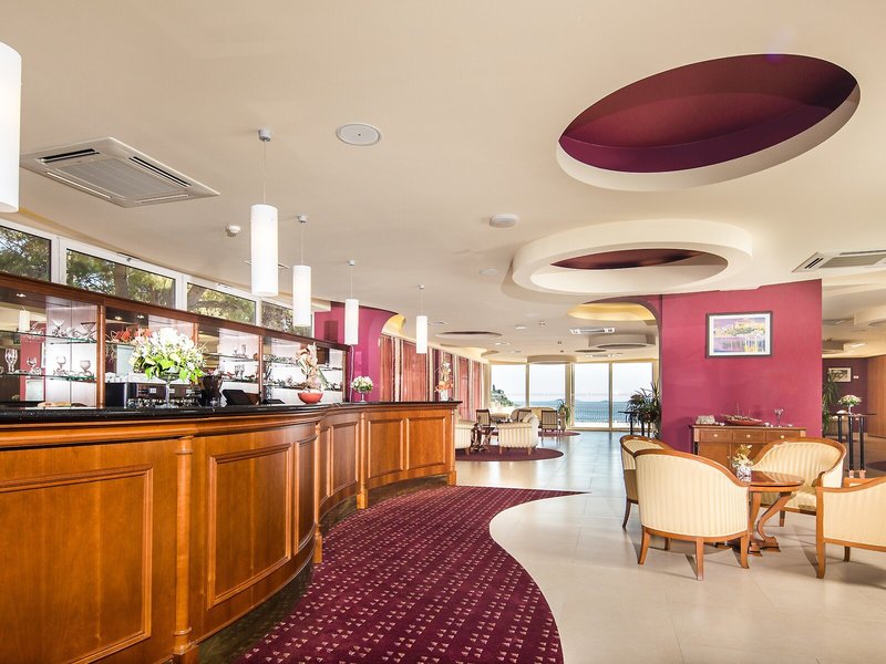 Lage & Umgebung Das Hotel liegt von einem traumhaften Pinienwald umgeben auf der Halbinsel Raduca, gegenüber der malerischen Altstadt, die Sie auf einem schönen Uferweg problemlos zu Fuß erreichen (ca. 400 m). Der Felsstrand mit wunderschönem, klarem Wasser befindet sich ungefähr 200 m von der Anlage entfernt. Einkaufsmöglichkeiten, Restaurants und Bars sowie eine Anbindung an die öffentlichen Verkehrsmittel finden Sie im Ort (etwa 400 m). Zum Flughafen sind es etwa 20 km.