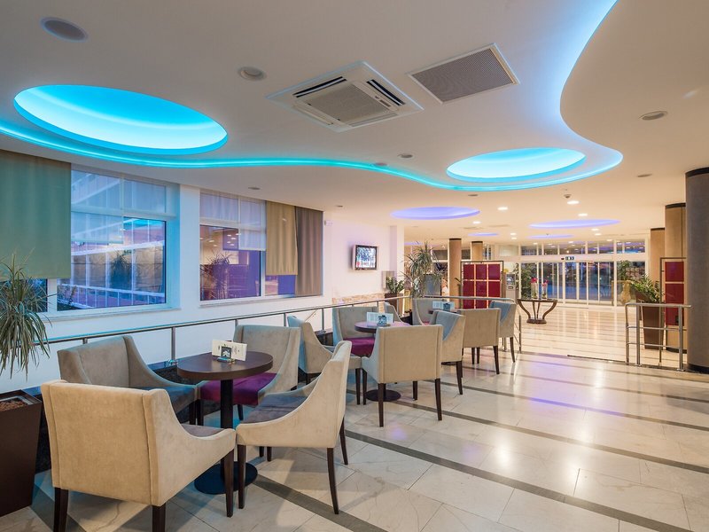 Jedlo a nápoje: K dispozícii je množstvo možností stravovania vrátane kaviarne a baru. Hostia si môžu vychutnať výber špecialít v klimatizovanej nefajčiarskej reštaurácii. K dispozícii je polpenzia a plná penzia. Ponúkajú sa bohaté raňajky formou bufetu, obedy à la carte a pestré a chutné večere formou bufetu. Hotel ponúka aj výber alkoholických a nealkoholických nápojov.