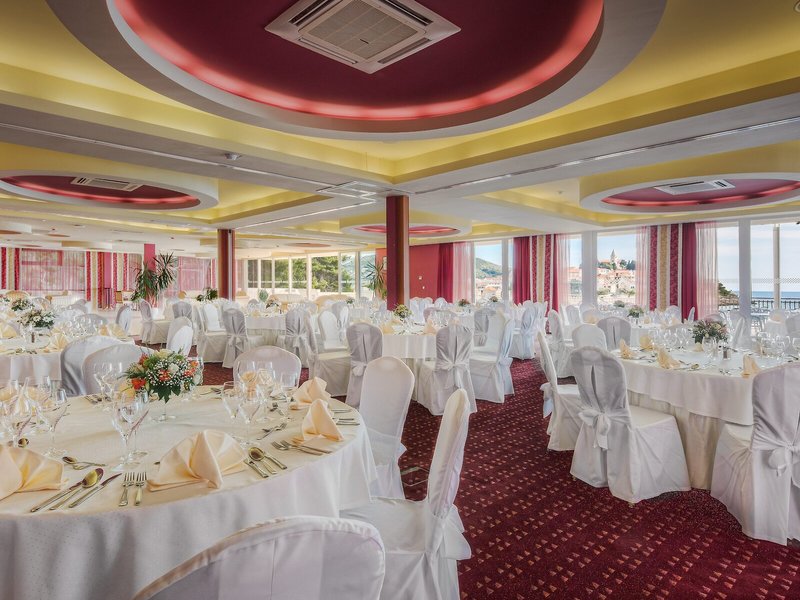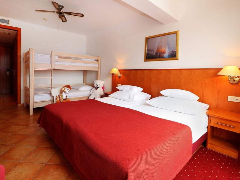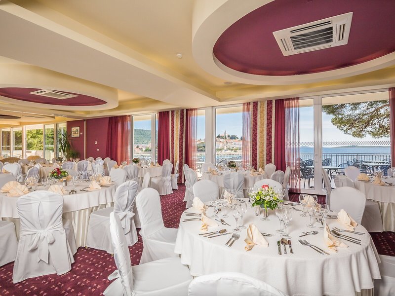 Poloha a okolie Hotel je obklopený krásnym borovicovým lesom na polostrove Raduca, oproti malebnému starému mestu, do ktorého sa ľahko dostanete pešo po krásnej nábrežnej ceste (cca 400 m). Skalnatá pláž s krásnou, čistou vodou sa nachádza približne 200 m od komplexu. V meste (cca 400 m) nájdete obchody, reštaurácie a bary, ako aj spoje verejnej dopravy. Letisko je vzdialené asi 20 km.