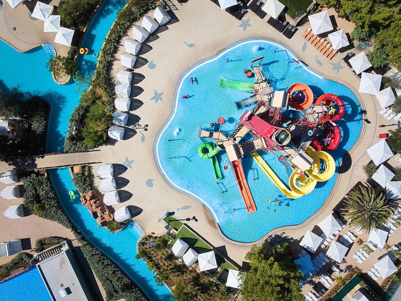 Sport & Fitness: Neben Innen- und Außenpools gibt es einen Kinderbadebereich. Erfrischende Getränke an der Poolbar und wohlige Entspannung im Whirlpool bringen alle Wasserratten in die beste Stimmung. Auf der Sonnenterrasse mit Liegestühlen und Schirmen lässt sich der Urlaub genießen. Die Unterbringung bietet ein umfangreiches Outdoor-Sportprogramm mit Volleyball und Minigolf sowie gegen Gebühr Radfahren/Mountainbiking, Tennis und Basketball. Mit Windsurfen, Tretbootfahren, Kanufahren, Kajakfahren und Schnorcheln kommen auch Wassersportfreunde auf ihre Kosten. Den Gästen steht im Haus mit einem Fitnessstudio, Tischtennis, Badminton, Billard, Yoga, Gymnastik und Aerobic ein breites Spektrum an Indoor-Sportarten zur Auswahl. Im Hotel werden verschiedene Wellnessangebote wie Spa, Sauna, Dampfbad, Hammam, Schönheitssalon und Massage-Anwendungen offeriert. Ein Animationsprogramm und ein Miniclub sind Möglichkeiten der Freizeitgestaltung.