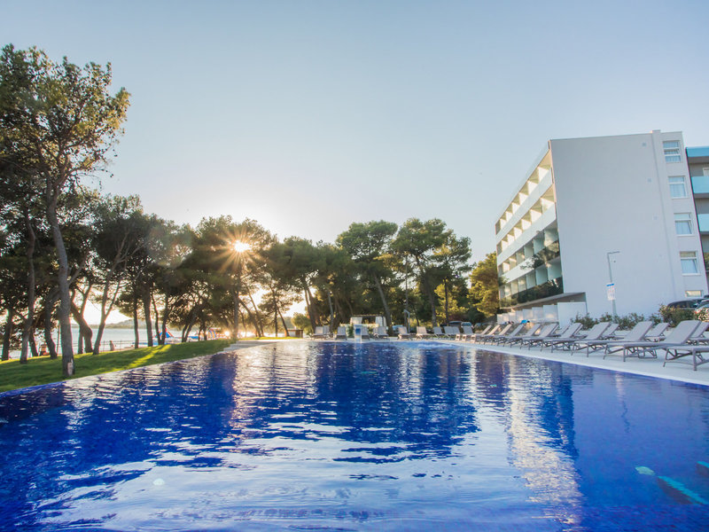 Poloha a okolie Od hotela je to len pár minút chôdze na pláž. Najbližšie bary a reštaurácie sú vzdialené len cca 300 m, ACI Marina Vodice cca 500 m od ubytovania. Šibenik je vzdialený asi 10 km a Trogir asi 55 km. Letisko Split je vzdialené približne 49 km.