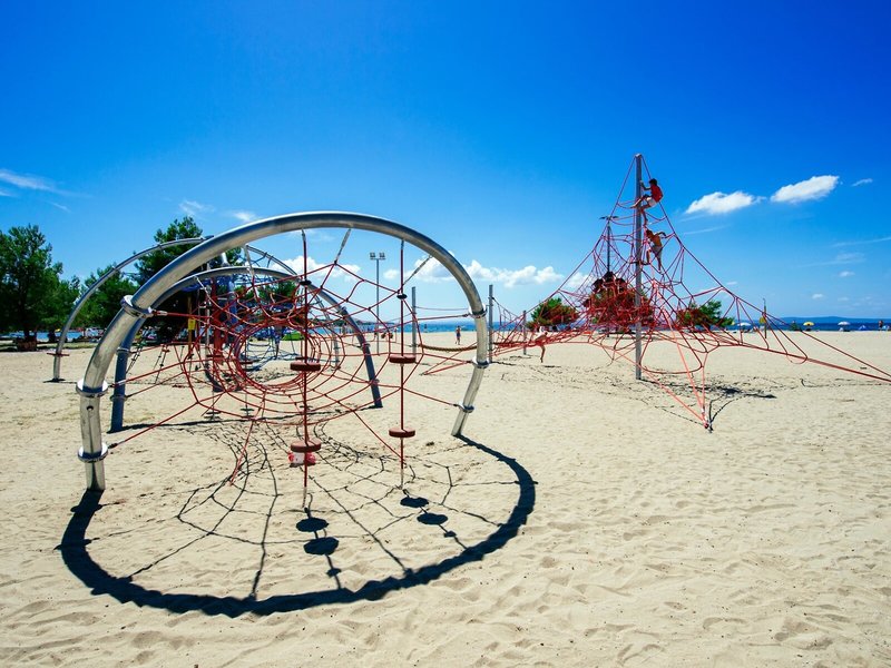 - Pláž: piesočná, štrková, mierne sa zvažujúca, ležadlá, ležadlá, slnečníky