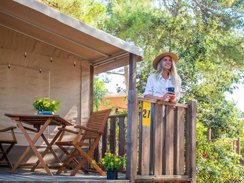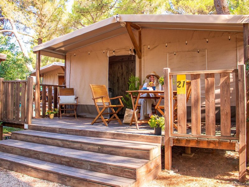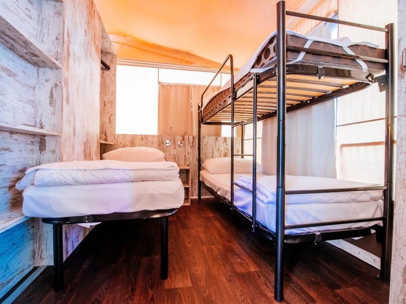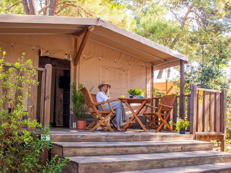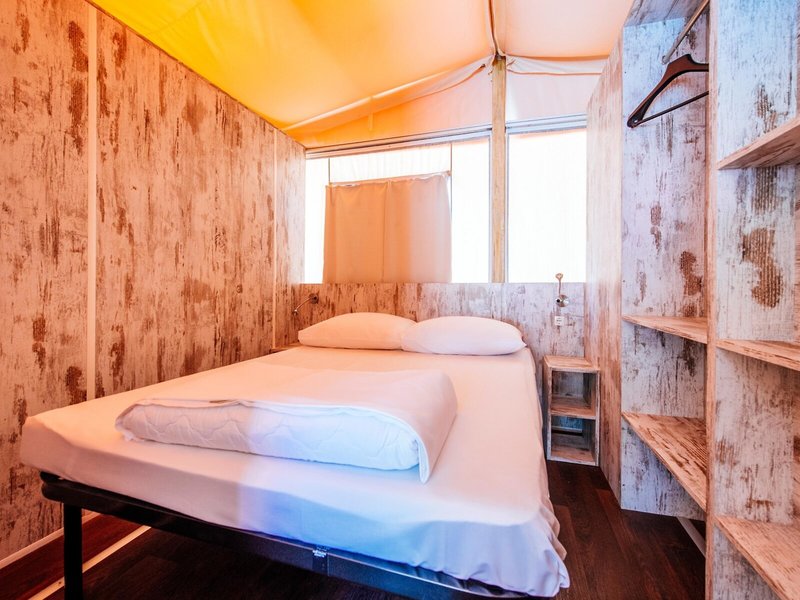 - GLAMPING (ZZX1), Zelt, Gartenseite, Gartenblick, Gesamtanzahl der Räume in diesem Zimmertyp: 3, Aufteilung wie folgt: 2 Schlafzimmer, 3 Einzelbetten (70x190cm), 1 Doppelbett (140x190cm), Moskitonetz, Sofa, Kochnische, Kühlschrank, Kochplatte, Kaffeemaschine, Fernseher: Flatscreen, Dusche, WC, Terrasse: mit Liegestühlen, mit Sitzgelegenheit, Nebenkosten: Endreinigung: ca. 40 EUR
