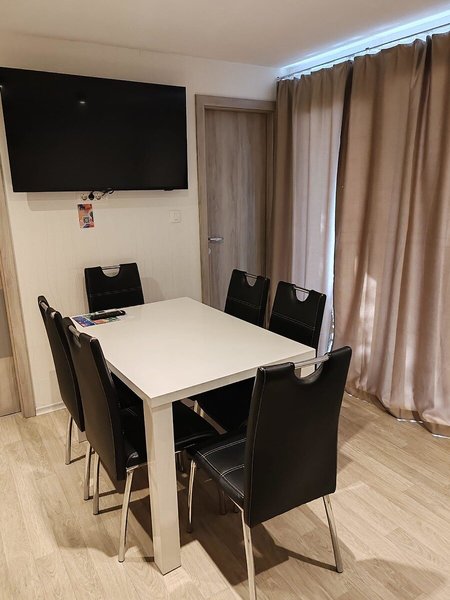 - MH Adria superior 4+1, Zóna C (MHX6), Mobilný dom, cca 34 m², posledná kompletná rekonštrukcia 2025, celkový počet izieb v tomto type izby: 3, rozloženie: kombinovaná obývacia izba/spálňa, 2 spálne, 2 samostatné postele, 1 manželská posteľ, 1 rozkladacia pohovka, detská postieľka: za poplatok, nutná rezervácia a vyžiadanie, klimatizácia: zadarmo, kúrenie, podlaha: laminát, písací stôl, kuchyňa, chladnička: zadarmo, plynový/elektrický sporák, mikrovlnná rúra, rýchlovarná kanvica, jedálenský stôl, internet: Wi-Fi: zadarmo, TV: plochá obrazovka, sprcha, WC, 2 kúpeľne, terasa: s posedením, dodatočné náklady: záverečné upratovanie: za poplatok