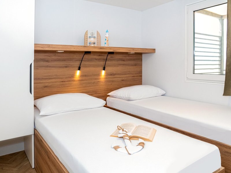 - Relax 6+2 pax, 2nd row from the beach (MHX3), Mobile Home, Meerseite, eingeschränkter Meerblick, ca. 39 - 40 m², letzte Komplettrenovierung 2016, Gesamtanzahl der Räume in diesem Zimmertyp: 3, Aufteilung wie folgt: 3 Schlafzimmer, 4 Einzelbetten, 1 Doppelbett, 1 Schlafsofa, Babybett: gegen Gebühr, Moskitonetz, Klimaanlage: ohne Gebühr, Heizung, Fußboden: PVC, Sofa, Schreibtisch, Küche, Kühlschrank: ohne Gebühr, Gas/E-Herd, Mikrowelle, Geschirrspüler, Kaffeemaschine, Wasserkocher, Esstisch, Internet: WLAN/WiFi: ohne Gebühr, Fernseher: Flatscreen, im Wohnbereich, Reinigungsservice: gegen Gebühr, Dusche, WC, 2 Bäder, Terrasse: mit Sitzgelegenheit, Nebenkosten: Endreinigung: einmalig ca. 40 EUR