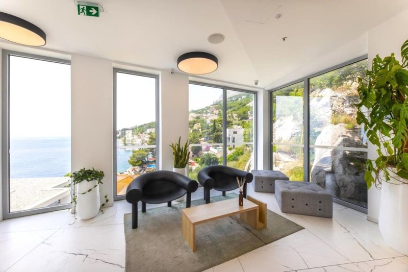 Deluxe apartmán s výhľadom na more: Tieto veľmi priestranné a elegantné Deluxe apartmány majú spálňu s manželskou posteľou veľkosti king-size a samostatnú obývaciu izbu s pohovkou. Sú navrhnuté pre maximálne pohodlie a ponúkajú všetky vymoženosti dvojlôžkových izieb (cca 50-55 m², SDM).