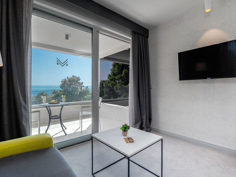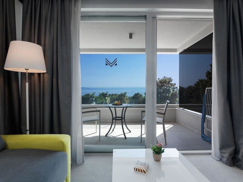- Dvojlôžková izba s výhľadom na more (DZM1), dvojlôžková izba, nefajčiarska izba, nová budova, morská strana, výhľad na more, cca 27 m², celkový počet izieb v tomto type izby: 1, rozloženie: kombinovaná obývacia izba/spálňa. , detská postieľka: bez poplatku, dopyt a rezervácia nutná, klimatizácia: zdarma, sezónna, studená, kúrenie: sezónne, podlaha: koberec, trezor: zdarma, pohovka, písací stôl, príslušenstvo na prípravu kávy/čaju, rýchlovarná kanvica, minibar: za poplatok, telefón, Internet: WLAN/WiFi: zdarma, TV, upratovanie: denne 9:00 - 14:00, bez poplatku, sprcha, WC, papuče: bez poplatku, fén, balkón: s posedením