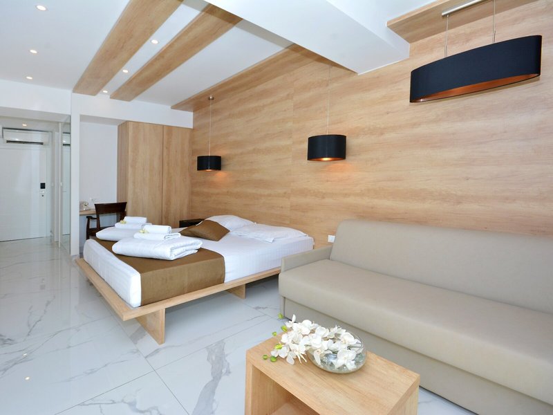 So wohnen Sie: In den Zimmern gibt es eine Klimaanlage und eine Heizung. Die Gäste können den Meerblick von Balkon oder Terrasse genießen. Die Zimmer verfügen über ein Kingsizebett und ein Sofabett. Zustellbetten können angefordert werden. Außerdem sind ein Safe, eine Minibar und ein Schreibtisch verfügbar. Für optimalen Komfort sorgen ein Telefon mit Direktwahl, ein TV-Gerät und WiFi. Die Badezimmer sind ausgestattet mit einer Dusche und einer Badewanne. Ein Haartrockner, ein Kosmetikspiegel und ein Telefon stehen für den Gebrauch zur Verfügung. Als besondere Annehmlichkeit in den Badezimmern bieten sich den Gästen Kosmetikartikel. Das Hotel bietet Familien- und Nichtraucherzimmer.
