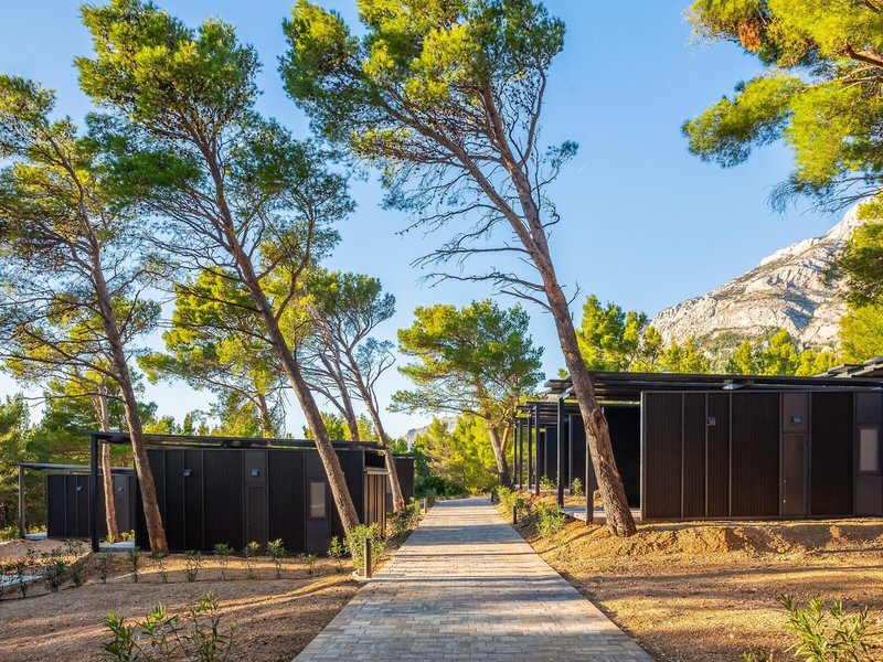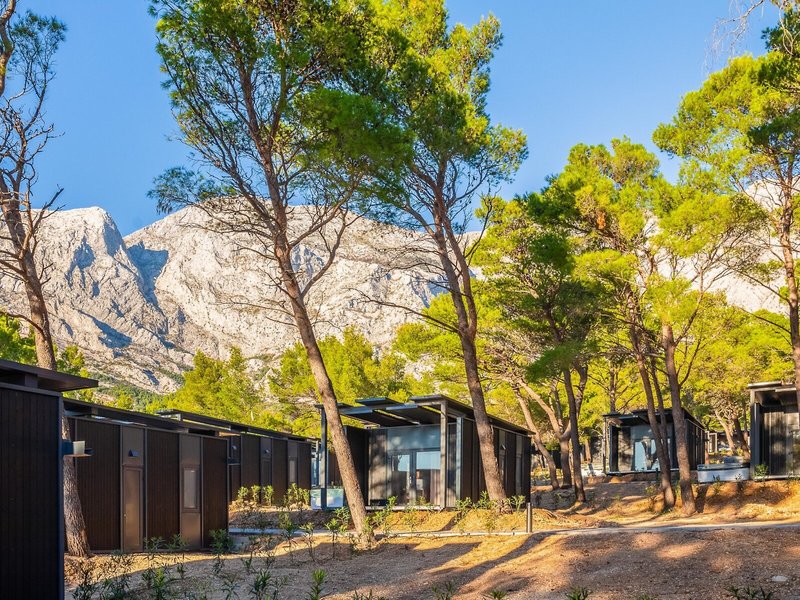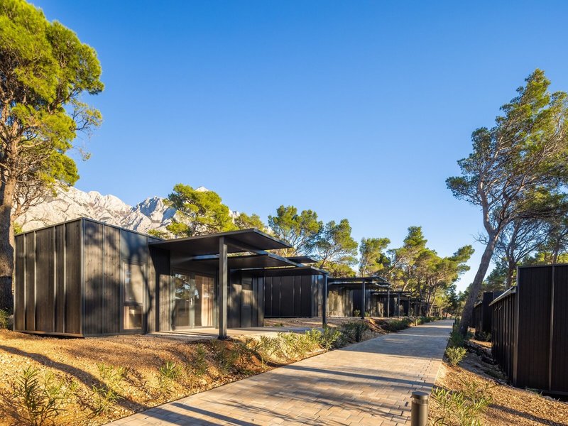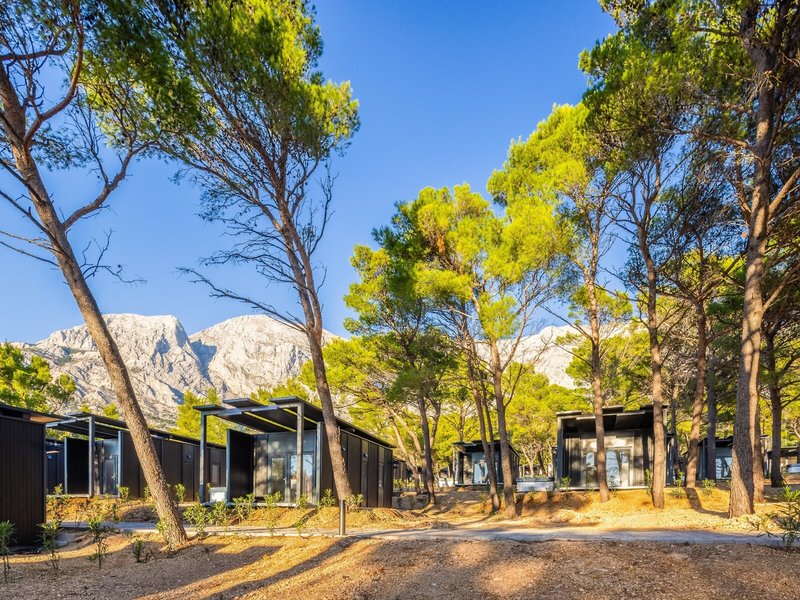 Poloha a okolie: Komplex sa nachádza uprostred bujnej zelene a priamo hraničí s lesom a ponúka pokojné prostredie. Nedotknutá pláž Baško Polje je vzdialená približne 500 metrov a je dostupná po schodoch. Makarska je vzdialená približne 9 km, zatiaľ čo Baška Voda a Promajna sú vzdialené približne 3 km. Nákupné centrum Spot Makarska je vzdialené približne 12 km a centrum mesta Split je vzdialené približne 56 km.