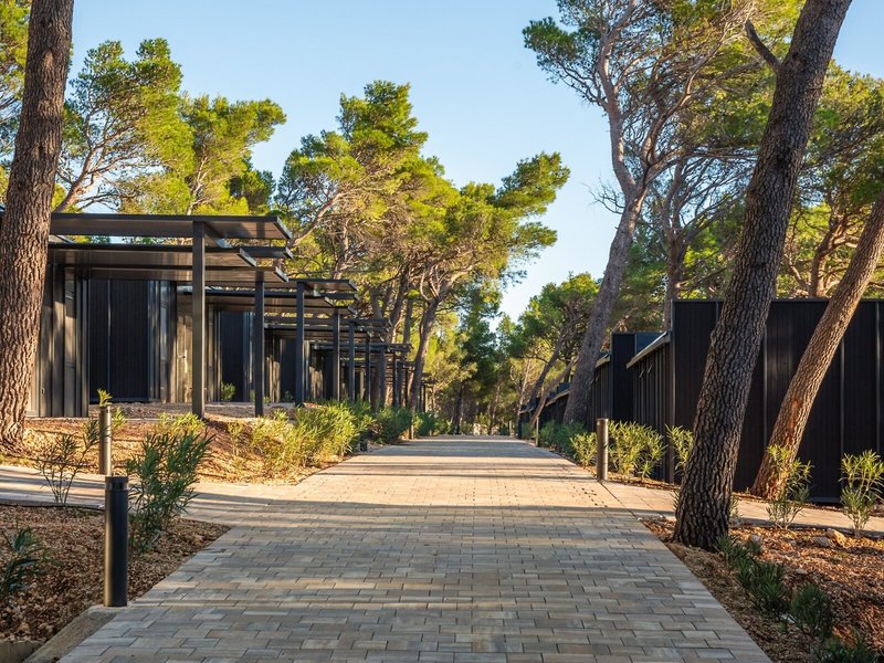 - Od pláže oddelené cestou, obklopené prírodou, lesom, zóna bez áut, pešia zóna