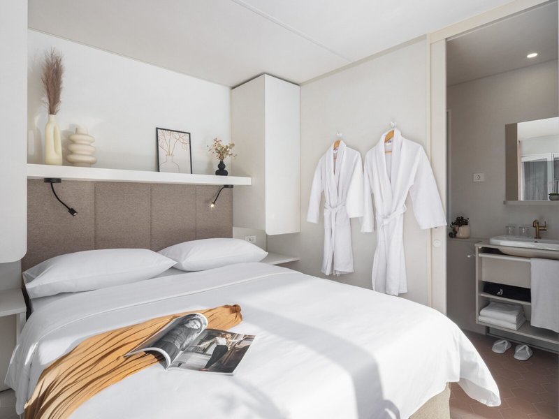 - Premium Holiday Home (MHX3), Mobile Home, ca. 32 m², letzte Komplettrenovierung 2025, Gesamtanzahl der Räume in diesem Zimmertyp: 3, Aufteilung wie folgt: Wohnzimmer, 2 Schlafzimmer, 2 Einzelbetten (80x200cm), 1 Doppelbett (160x200cm), Babybett: ohne Gebühr, Anfrage & Reservierung notwendig, Moskitonetz, Klimaanlage: ohne Gebühr, April - Oktober, individuell regelbar, Heizung: saisonabhängig, individuell regelbar, Safe: ohne Gebühr, Sofa, Kochnische, Kühlschrank: ohne Gebühr, Gas/E-Herd, Geschirrspüler, Kaffee-/Teezubereiter, Wasserkocher, Esstisch, Internet: WLAN/WiFi: ohne Gebühr, Fernseher: Flatscreen, im Wohnbereich, Reinigungsservice: täglich, ohne Gebühr, Dusche, WC, 2 Bäder, Föhn, Terrasse: mit Liegen, mit Sitzgelegenheit