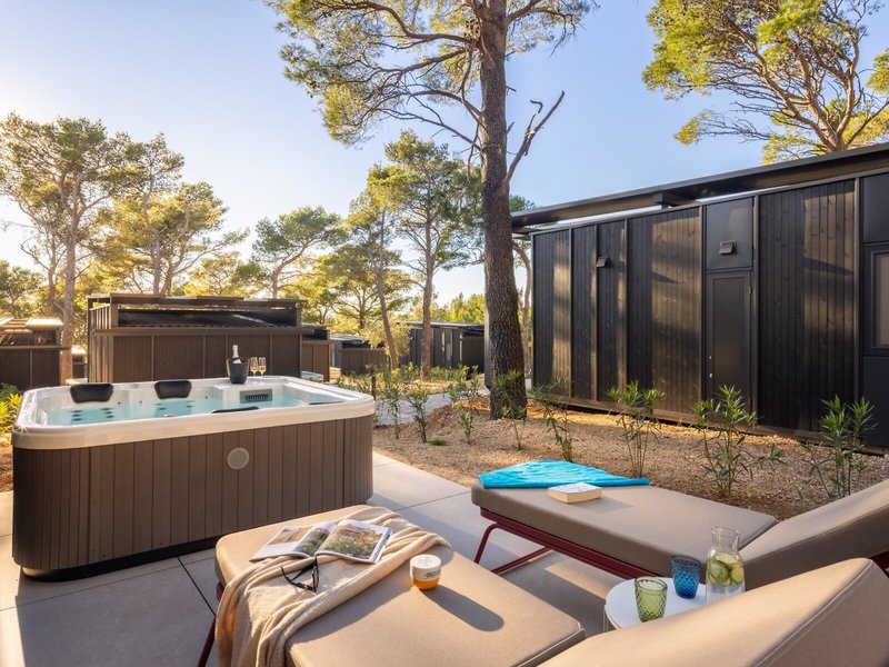 - Premium Escape with private jacuzzi (MHX4), Mobile Home, ca. 32 m², letzte Komplettrenovierung 2025, Gesamtanzahl der Räume in diesem Zimmertyp: 3, Aufteilung wie folgt: Wohnzimmer, 2 Schlafzimmer, 2 Einzelbetten (80x200cm), 1 Doppelbett (160x200cm), Babybett: ohne Gebühr, Anfrage & Reservierung notwendig, Moskitonetz, Klimaanlage: ohne Gebühr, April - Oktober, individuell regelbar, Heizung: saisonabhängig, individuell regelbar, Safe: ohne Gebühr, Sofa, Kochnische, Kühlschrank: ohne Gebühr, Gas/E-Herd, Geschirrspüler, Kaffee-/Teezubereiter, Wasserkocher, Esstisch, Internet: WLAN/WiFi: ohne Gebühr, Fernseher: Flatscreen, im Wohnbereich, Dusche, WC, Bademantel: ohne Gebühr, Slipper: ohne Gebühr, 2 Bäder, Föhn, Terrasse: mit Liegen, mit Sitzgelegenheit, mit Whirlpool
