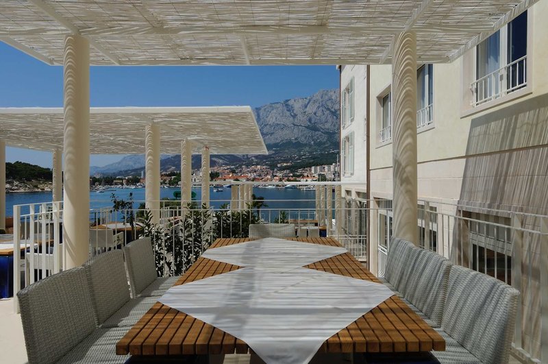Ausstattung: Das Hotel verfügt über 45 Zimmer und 5 Suiten auf 4 Etagen. Zur weiteren Ausstattung gehören Rezeption (24 Stunden), Hotelsafe, Cafe-Bar, Taverne- Pizzeria, Restaurants, Konferenz- und Veranstaltungsraum "Žalo", Beautysalon. Im Außenbereich befinden sich die Sonnenterrasse und der Süßwasserpool. Die Liegen sind dort inklusive. Wi-Fi ist für die Gäste im gesamten Hotel kostenfrei verfügbar.