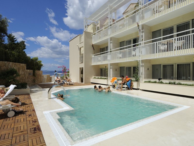 Lage & Umgebung Direkt am Meer, im Zentrum des hübschen Ferienortes Makarska gelegen. Der Felsstrand mit Badeplateaus erstreckt sich direkt vor dem Hotel. Split ist ca. 60 km vom Hotel entfernt.
