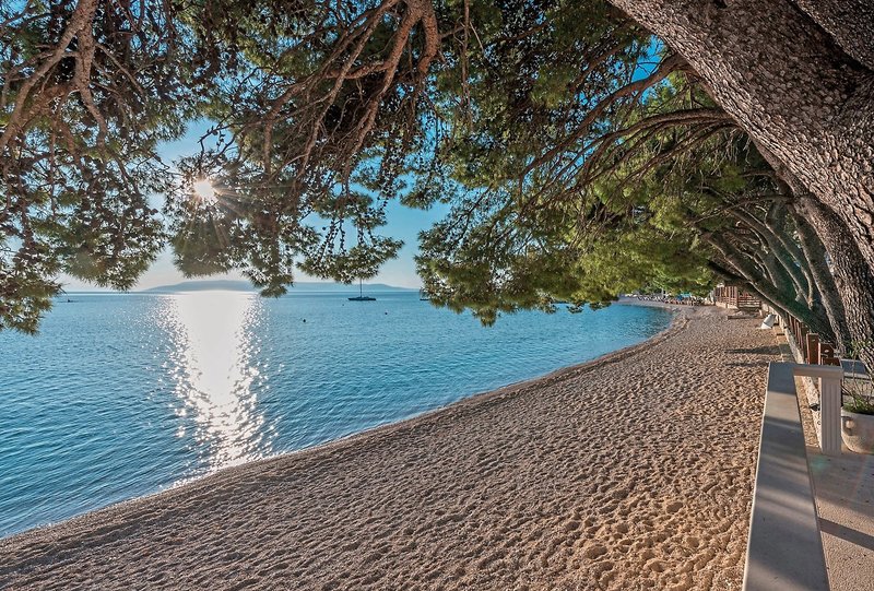- Kiesstrand: öffentlich, von der Anlage getrennt durch Straße, Liegen (kostenpflichtig)