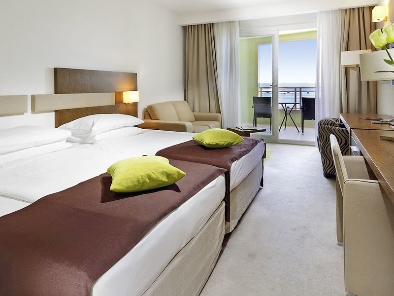 Superior-Zimmer (DSP, ca. 24-30 qm), Klimaanl., Safe, Minibar (geg. Geb.), Kaffee-/Teezubereiter, WLAN, TV. Dusche, WC, Föhn. Balkon/Terrasse mit Meerblick. Max. 3E