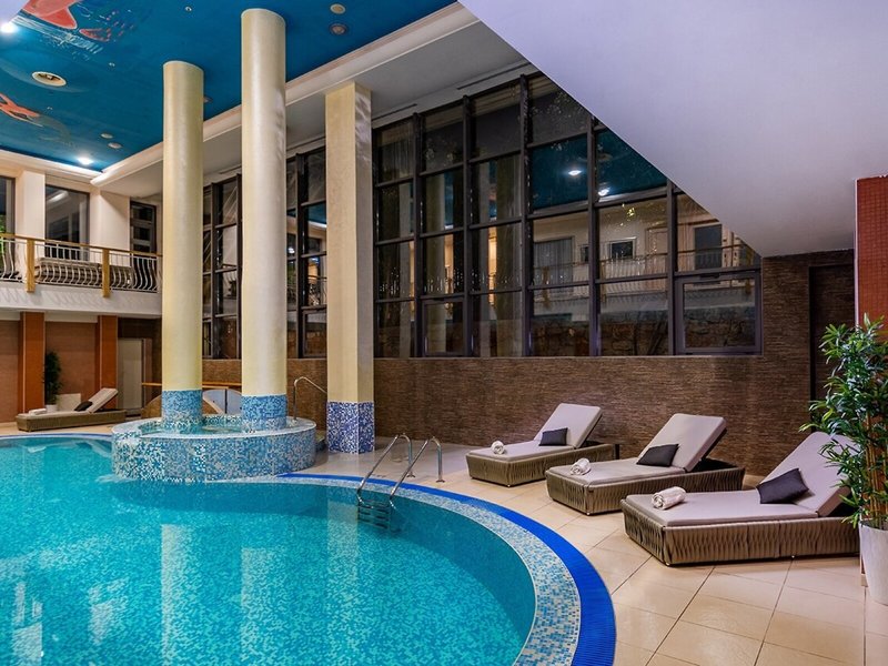 - Bazény: detský bazén, vnútorný bazén, vonkajší bazén, slnečníky pri bazéne, ležadlá pri bazéne