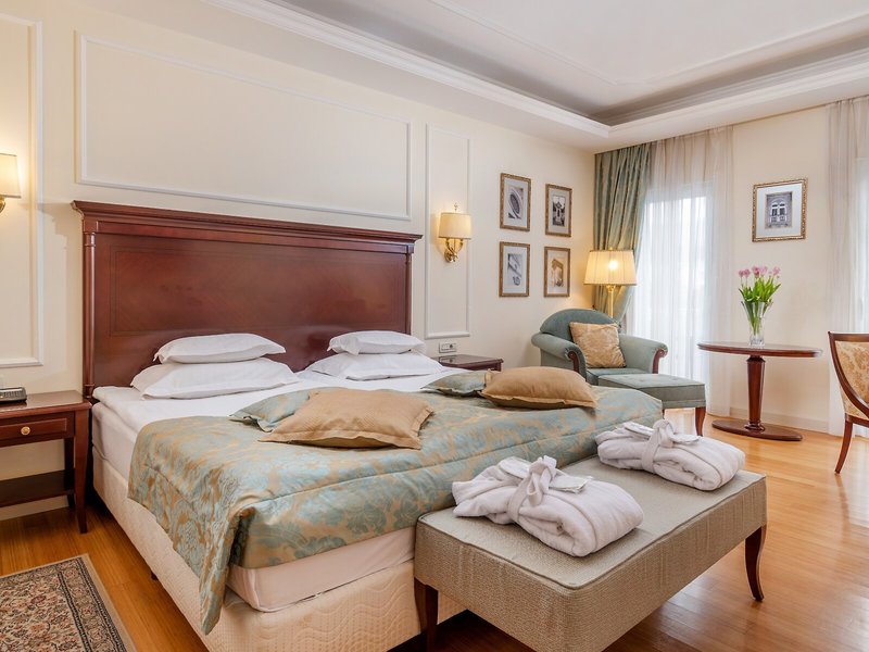 Takto zostanete: Klimatizácia a individuálne regulovateľné kúrenie zabezpečujú príjemnú vnútornú klímu v izbách. Väčšina izieb má balkón alebo terasu. Izby majú manželskú posteľ, manželskú posteľ, manželskú posteľ alebo rozkladaciu pohovku. K dispozícii je aj trezor, minibar a pracovný stôl. K dispozícii je tiež mini chladnička a príslušenstvo na prípravu čaju/kávy. Pre väčšie pohodlie hostí je k dispozícii lis na nohavice. Okrem toho je tu telefón s priamou voľbou, TV so satelitnými/káblovými kanálmi, rádio, napájací adaptér, budík a WiFi (bez poplatku). K vybaveniu izieb patria papuče. Kúpeľne sú vybavené sprchovacím kútom a vaňou. K dispozícii je sušič vlasov, kozmetické zrkadlo a župany. Kozmetické výrobky zaisťujú extra pohodlie v kúpeľniach. Rezervovať je možné aj bezbariérové izby s bezbariérovými kúpeľňami. Dom ponúka 96 nefajčiarskych izieb.