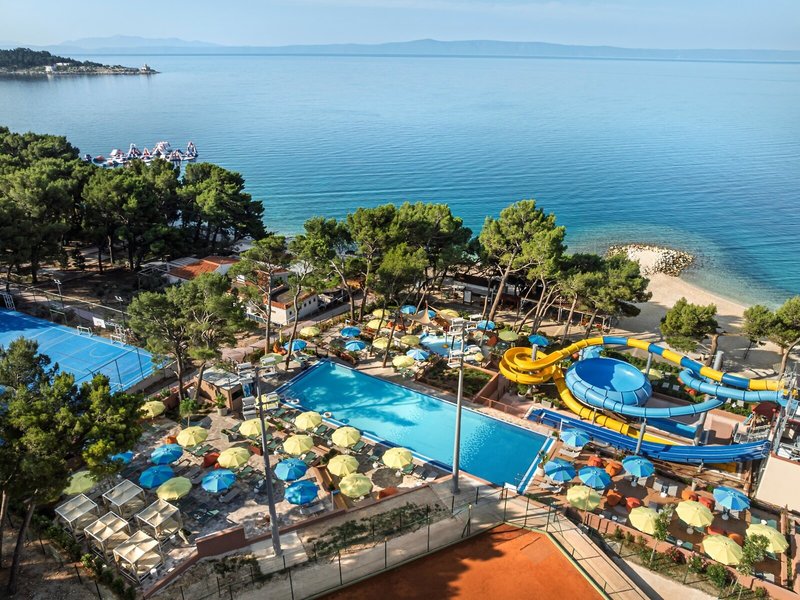 Poloha a okolie Hotel sa nachádza na prvom mieste na pláži uprostred idylickej prírodnej rezervácie. Nerušený relax sľubuje prírodná pláž prístupná po schodoch. Spája sa tu nedotknutá príroda a blízkosť kultúrnych pamiatok. Tichú atmosféru dokonale dopĺňa staré mesto Makarska vzdialené približne 800 m, zatiaľ čo letisko Split je vzdialené približne 70 km.