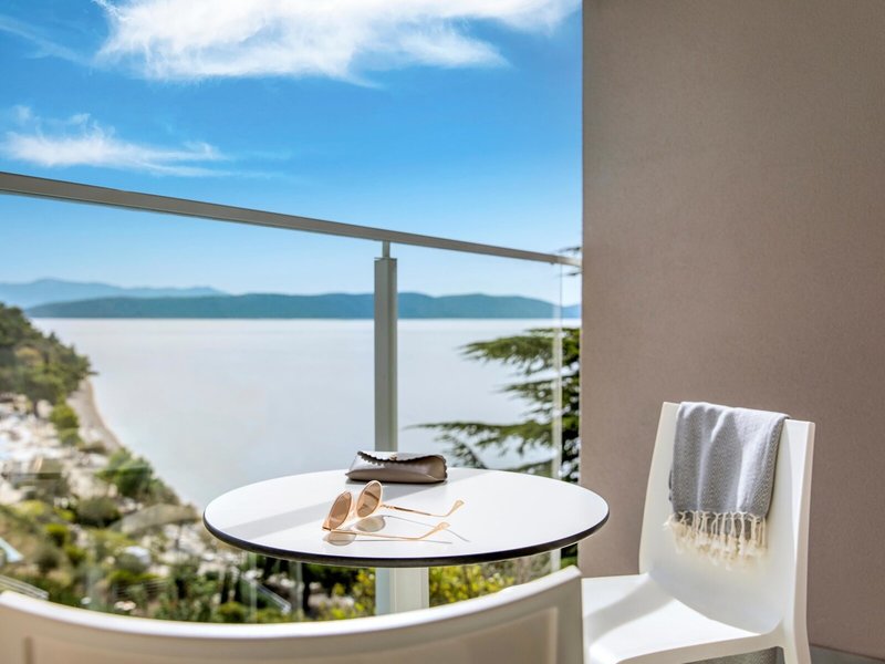 - Junior Suite s výhľadom na more (JSM1), Junior Suite, Minimálny vek v izbe: 16 rokov, v hlavnej budove, v prístavbe, Výhľad na more, cca 32 - 45 m², posledná kompletná rekonštrukcia v roku 2015, Celkový počet izieb v tomto type izby: 1, Rozloženie: Kombinovaná obývacia izba/spálňa, 1 manželská posteľ (180x200cm), Klimatizácia: bezplatne, individuálne ovládané, Kúrenie: individuálne ovládané, Podlaha: Dlažba, Trezor: bezplatne, Pracovný stôl, Kávovar/čajník, Minibar: Voda: bezplatne, Telefón, Internet: WLAN/WiFi: bezplatne, Televízor: Plochá obrazovka, Satelitná TV, Izbová služba: za poplatok, Dažďová sprcha, WC, Župan, Papuče, Fén, Balkón alebo terasa