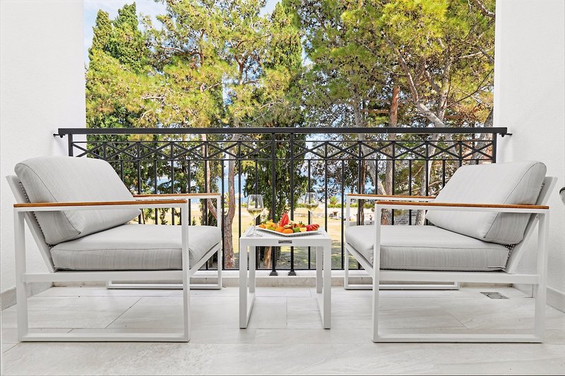 - Dvojlôžková izba, výhľad na more, posteľná bielizeň, uteráky a matrace zo 100% organickej bavlny, sprcha, WC, klimatizácia, minibar, trezor, TV, terasa