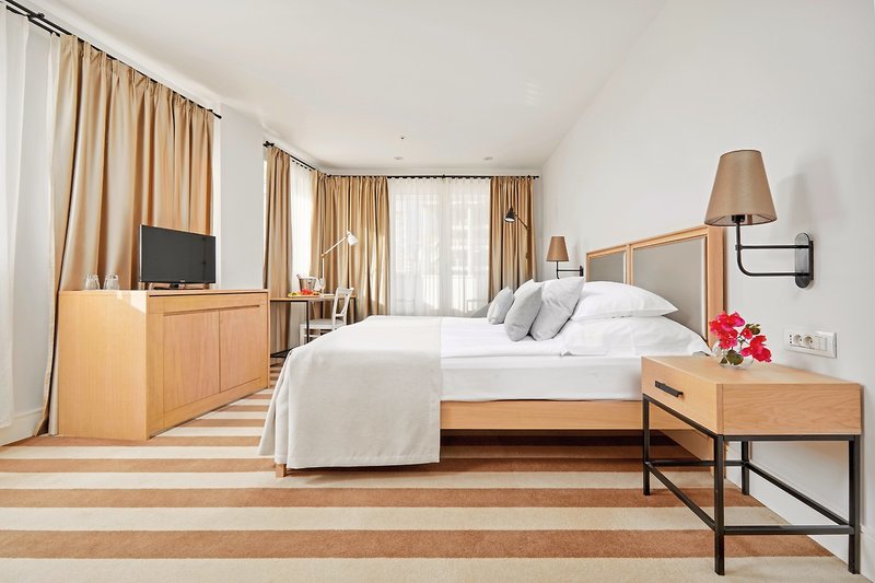 - Dvojlôžková izba, výhľad na mesto, posteľná bielizeň, uteráky a matrace zo 100% organickej bavlny, sprcha, WC, klimatizácia, minibar, trezor, TV, francúzsky balkón